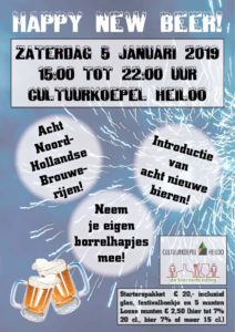 Happy New Beer is een nieuw Bierfestival annex Nieuwjaarsborrel waarbij acht (jaarlijks wisselende) brouwerijen hun assortiment laten proeven, waarbij ze in ieder geval één nieuw bier zullen introduceren! Om 16:00 uur krijgt iedere brouwer één minuut om zijn of haar nieuwe bier te presenteren